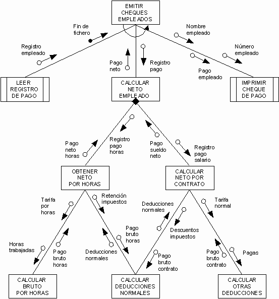 El siguiente ejemplo muestra un proceso de emisión de cheques para el pago de nóminas de los empleados de una empresa.